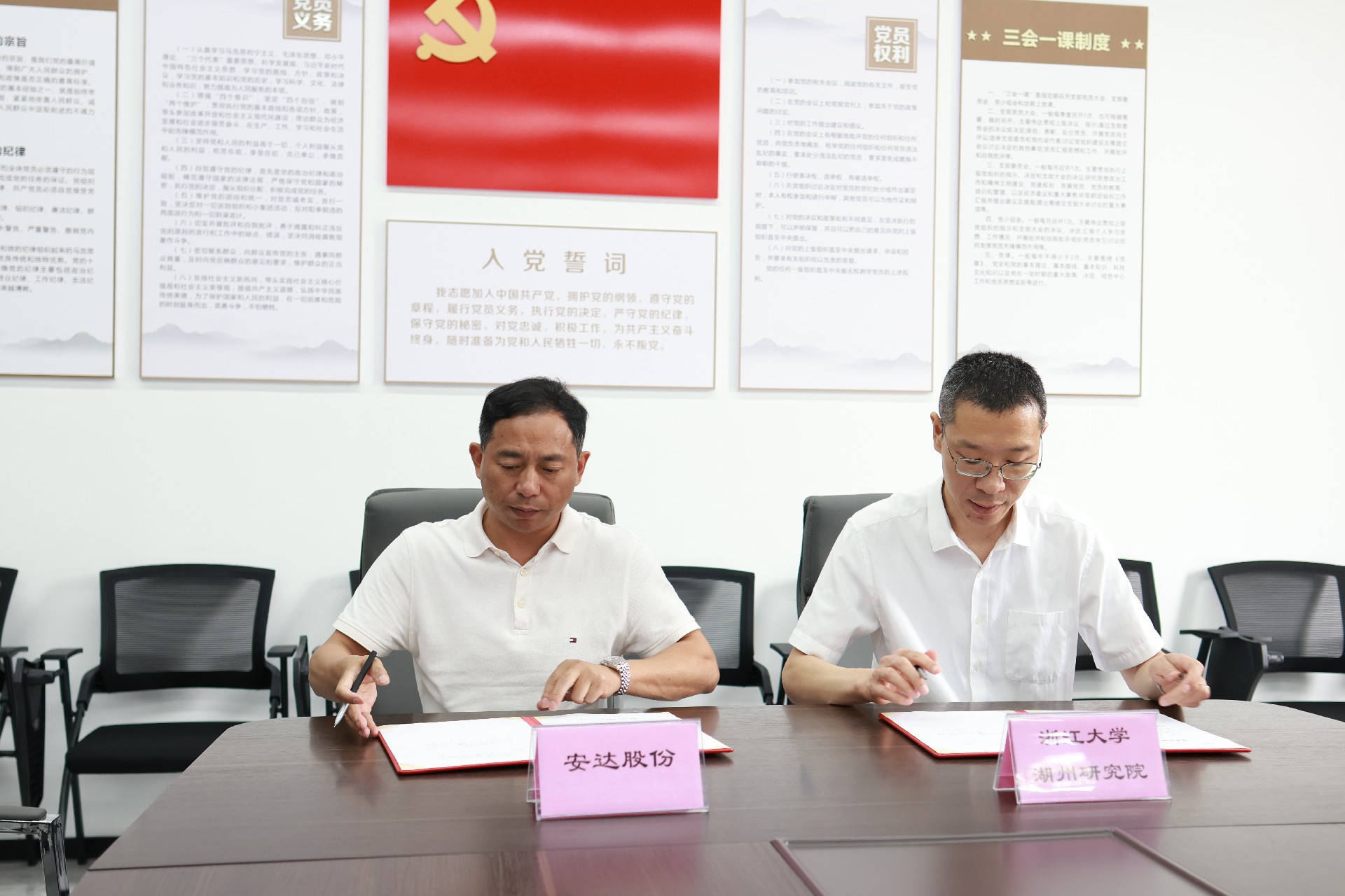 6月13日,湖州安達汽車配件股份有限公司與浙江大學湖州研究院項目合作簽約儀式在公司舉行,雙方共同簽署“基于能耗監管的智能控制系統研發項目”合作協議。浙江大學湖州研究院副院長張偉、公司董事長、黨委書記管會斌等出席活動。